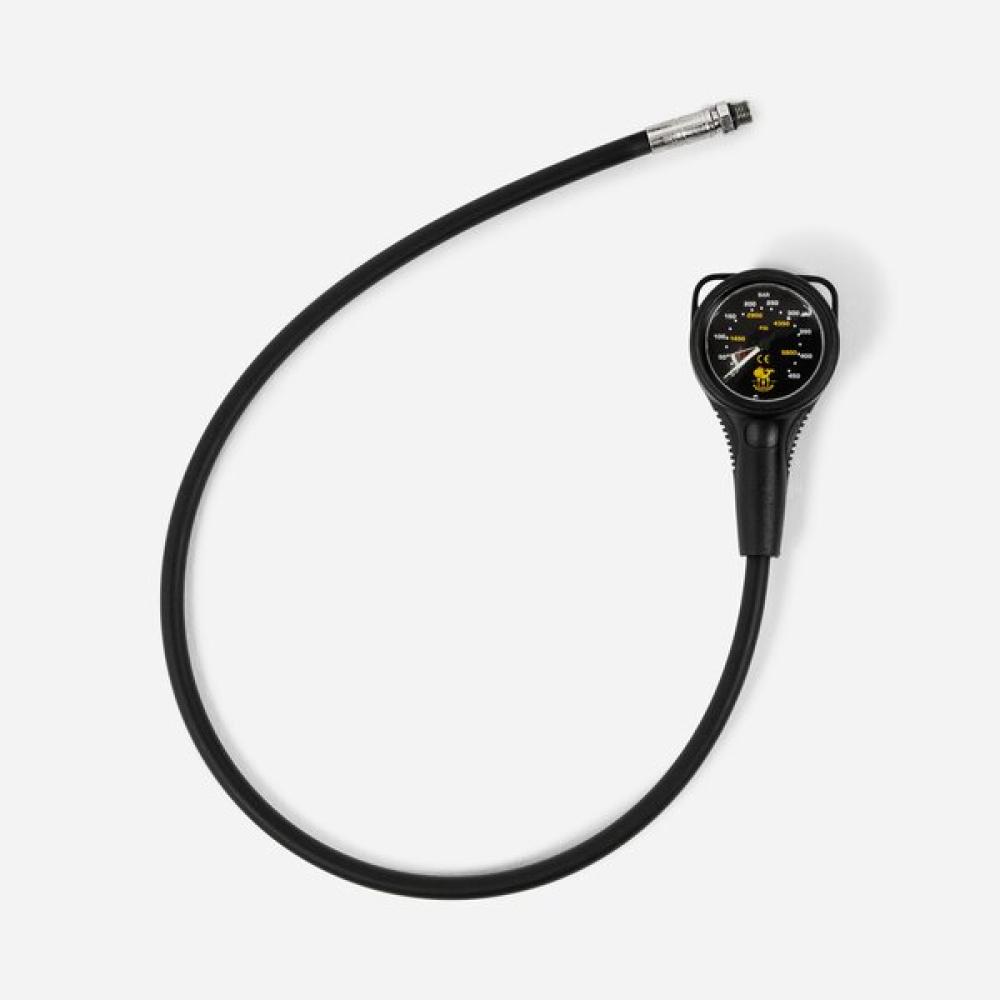 The Cirrus Black pressure gauge offers as compact and robust design, with a stylish black display and fluorescent numbers that can be easily read at any depth or environment. Reads both metric/bar and imperial/psi for diversity.