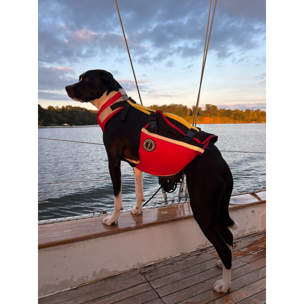 This PFD is for your best friend. The cape-style design has four adjustment points to ensure a secure fit on every dog. Constructed to support the pup's natural swim angle and provide maximum mobility, most of the buoyancy is under their neck and chest. USCG-approved fabrics, including durable Cordura on the belly and neck panels, make this an ideal choice for keeping your pet safe and comfortable on the water. 3D mesh on the back keeps things breathable and cool, and reflective panels enhance visibility in low light conditions. A reinforced carry-handle and leash attachment point makes the Underdog an excellent flotation device for the four-legged.